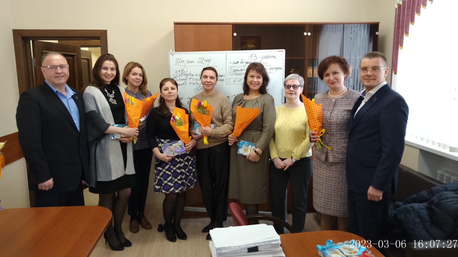 Поздравляя с праздником, председатель Контрольно-счетной палаты Ленинского городского округа Егорова Елена Викторовна благодарит коллектив за годы совместной работы, за поддержку в трудных ситуациях, за добрые советы в минуты сомнений, за находчивость в работе, за тёплую и дружную обстановку в коллективе и желает удачи во всех делах и начинаниях.